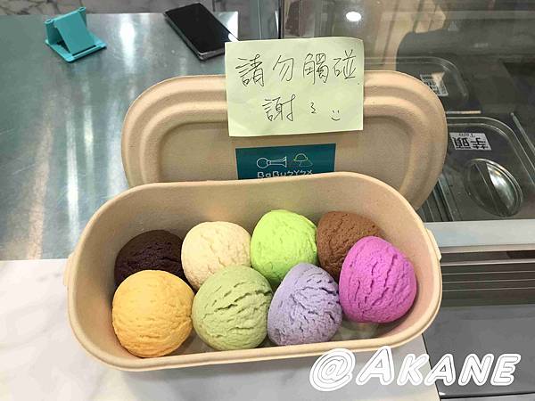 五顏六色的冰淇淋......老闆是個非常熱情的人、一看到我們走進門後就開始熱心介紹說的台灣冰淇淋跟其他國家冰淇淋的不同。多數的冰淇淋在製造過程中都缺不了牛奶、然而台灣冰淇淋卻不使用、反而直接採用天然的水果或是其他根本食材。介紹完的同時老闆也不吝嗇的一個一個給試吃、雖說是做生意、但看的出來老闆似乎特別熱愛這個職業、希望每個人都能滿意也能找到最喜歡的口味